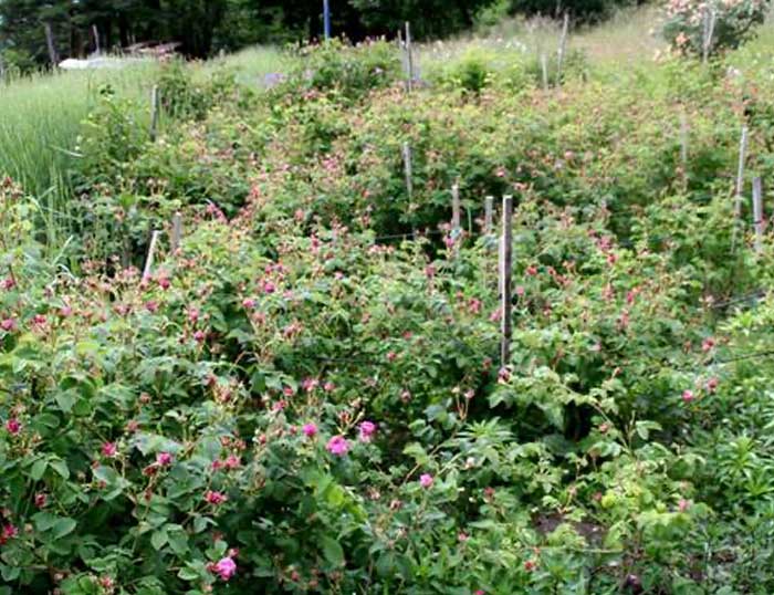 Die sonnige Hochterrasse von Kalditsch/Montan im Südtiroler Unterland. Die Bäuerin und Heilerin Lia vom Rothenhof baut hier die Damaszenerrosen liebevoll an.